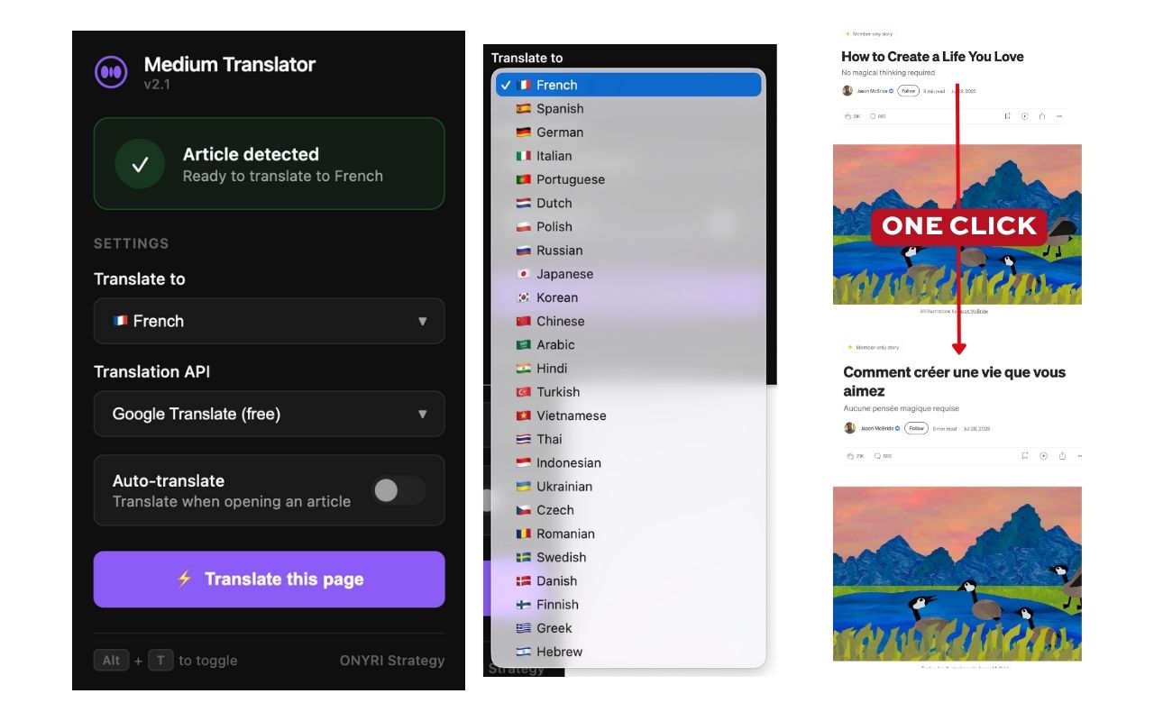 C’est exactement pour ça que nous avons créé Medium Translator.